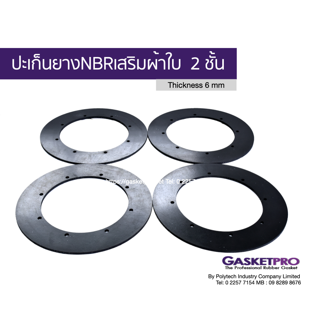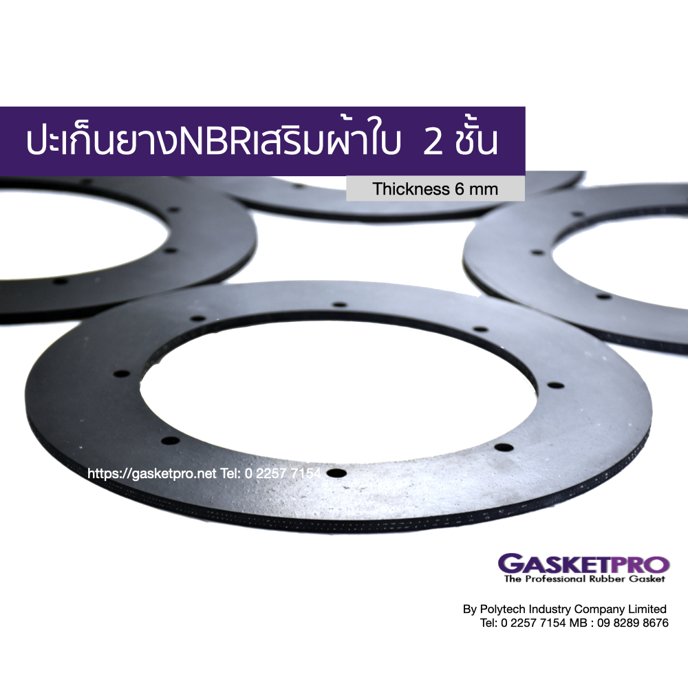 แผ่นยางปะเก็น NBR ความหนา 6 mm เสริมผ้าใบ 2 ชั้น Hardness 65+/5 Shore A นำมาตัดเป็นแผ่นยางปะเก็นตามแบบ Drawing SIZE : I.D 187 X O.D 291 mm พร้อมเจาะรูตามแบบ Drawing ของลูกค้า