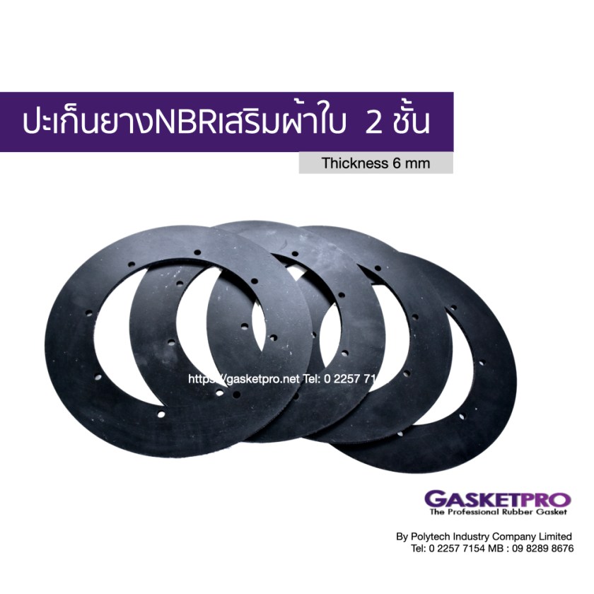 แผ่นยางปะเก็น NBR ความหนา 6 mm เสริมผ้าใบ 2 ชั้น Hardness 65+/5 Shore A นำมาตัดเป็นแผ่นยางปะเก็นตามแบบ Drawing SIZE : I.D 187 X O.D 291 mm พร้อมเจาะรูตามแบบ Drawing ของลูกค้า