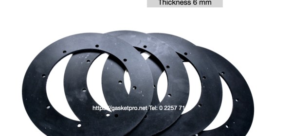 แผ่นยางปะเก็น NBR ความหนา 6 mm เสริมผ้าใบ 2 ชั้น Hardness 65+/5 Shore A นำมาตัดเป็นแผ่นยางปะเก็นตามแบบ Drawing SIZE : I.D 187 X O.D 291 mm พร้อมเจาะรูตามแบบ Drawing ของลูกค้า